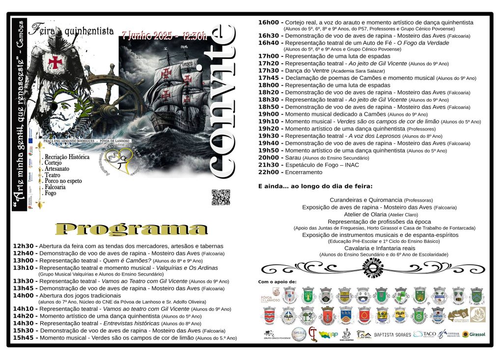 A Feira Quinhentista na Póvoa de Lanhoso envolve toda a comunidade educativa — desde o ensino pré-escolar ao ensino secundário — e pretende proporcionar aos alunos e ao público uma experiência educativa e cultural única, assente na valorização da história de Portugal e no legado de Luís de Camões.