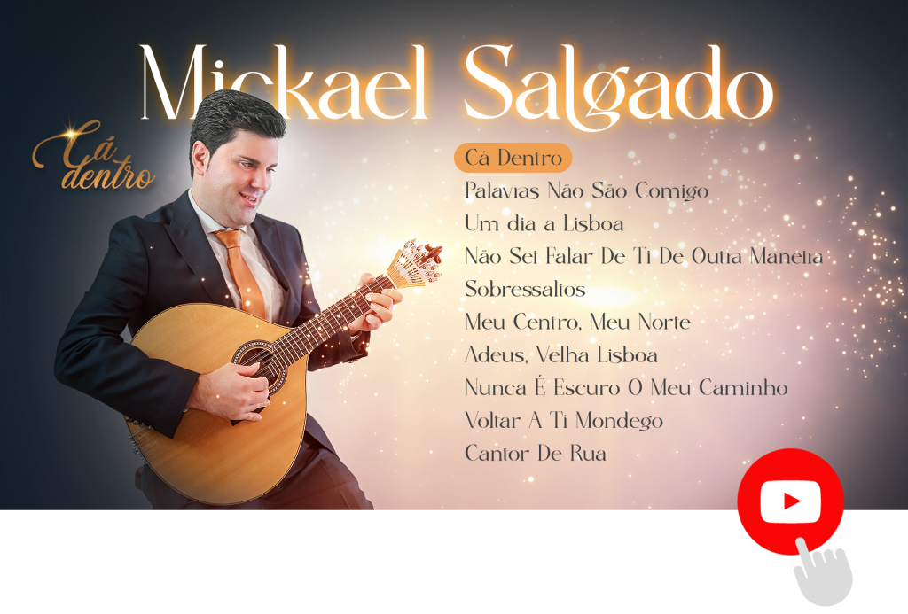 Mickael Salgado apresenta “Cá dentro”, um novo álbum composto por 10 fados que se estruturam como uma narrativa pessoal e artística. Um cd que se revela como uma viagem íntima pelo universo do fado, onde partilha experiências, emoções e reflexões que marcaram o seu percurso.